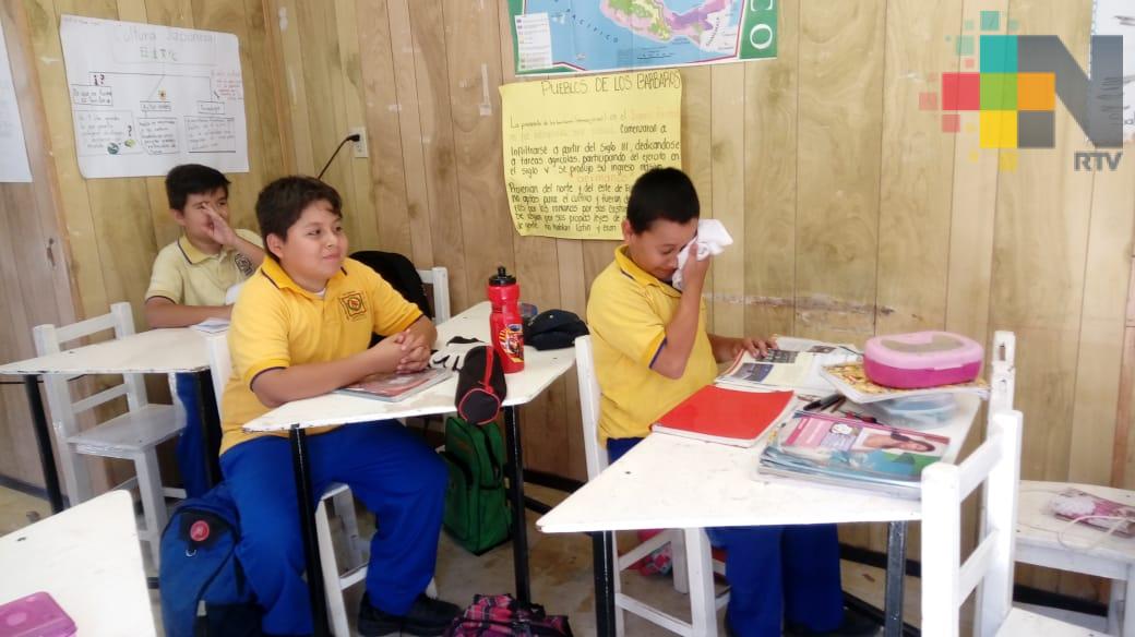 Coatzacoalcos, Ver.- Los 150 alumnos de la escuela primaria Adolfo Ruiz Cortines de la colonia Playa Sol en Coatzacoalcos, sufren de las altas temperaturas que se registran en el interior de las aulas móviles donde actualmente reciben clases. Cabe recordar que esta institución fue de las más afectadas por los sismos de septiembre del 2017.