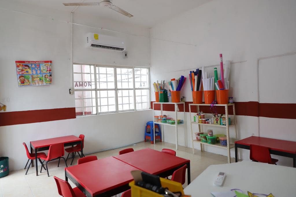 Como me comprometí hace dos semanas, entregamos una escuela pintada, con pizarrones nuevos y aulas climatizadas.