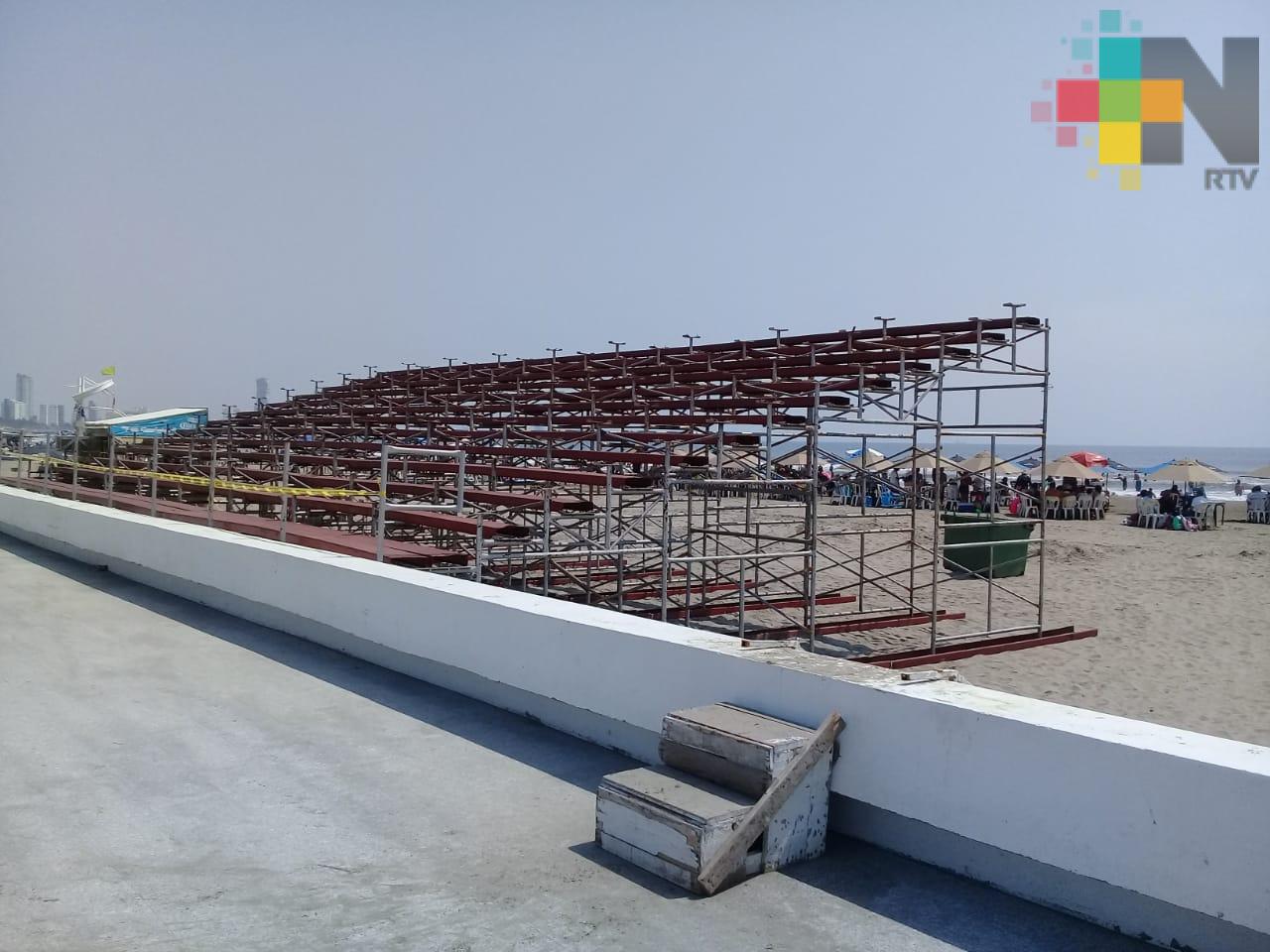 Boca del Río, Ver.- Este fin de semana comenzó la instalación de gradas para el Salsa Fest 2019 sobre el bulevar Vicente Fox del municipio de Boca del Río.