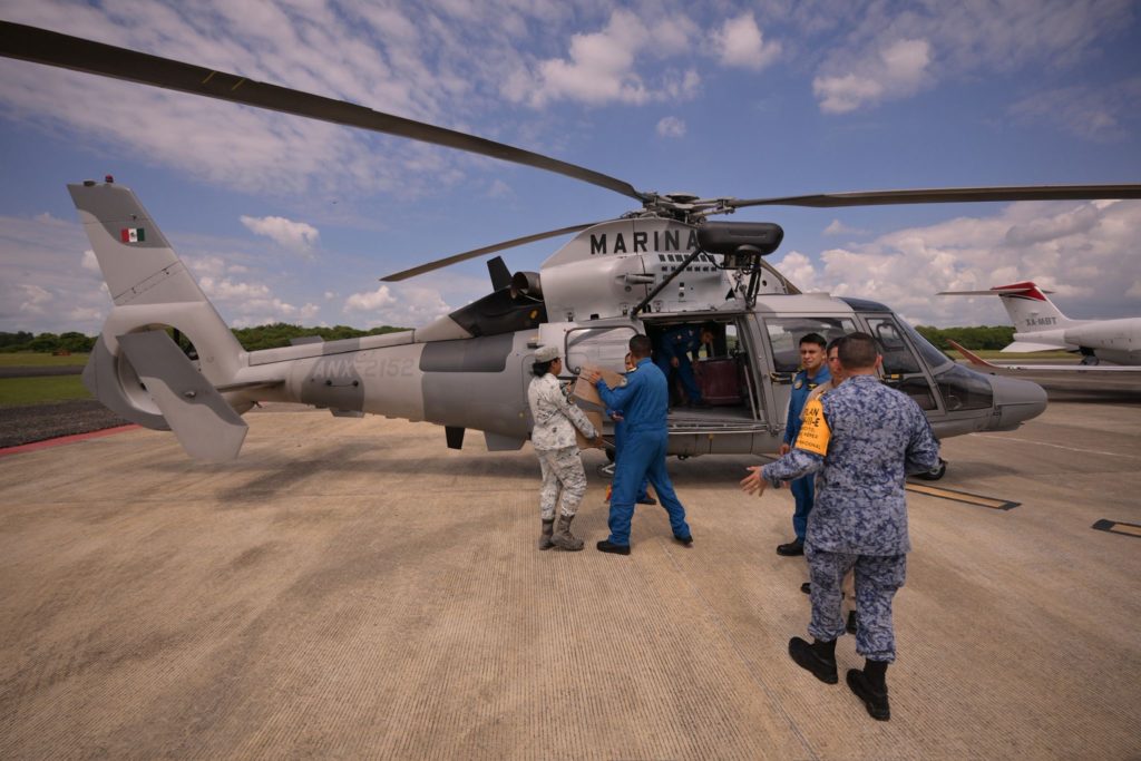 Asimismo, continúa el puente aéreo hacia Texcatepec, Zacualpan, Ilamatlán, Zontecomatlán e Ixhuatlán de Madero; al respecto la Mandataria informó que actualmente 12 aeronaves participan en estas operaciones, gracias a la coordinación de las secretarías de Marina, Defensa Nacional, el Gobierno del Estado, Telmex, Pemex y el Gobierno de Tamaulipas.