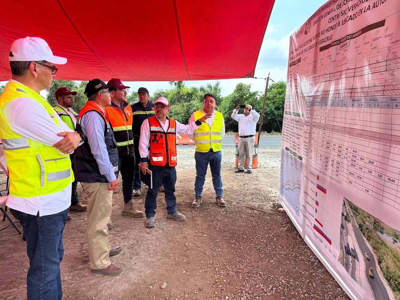 Posteriormente, Fuente Orrala verificó los trabajos de rehabilitación de accesos en los puentes Río Hondo I y II, ubicados en la autopista La Tinaja-Cosoleacaque, tramo La Tinaja-Cd. Isla, kilómetro 60+105 y kilómetros 68+200, respectivamente.
