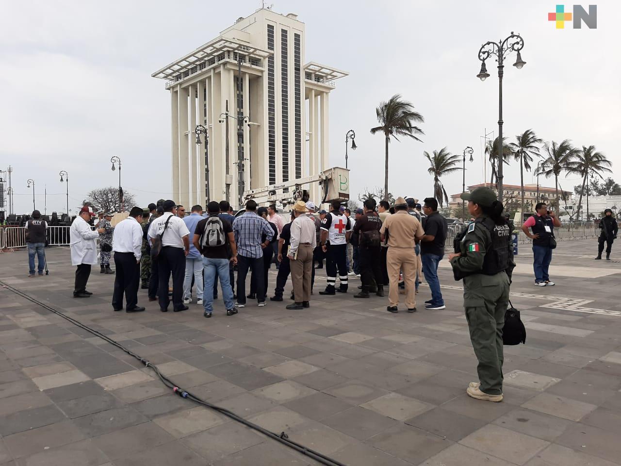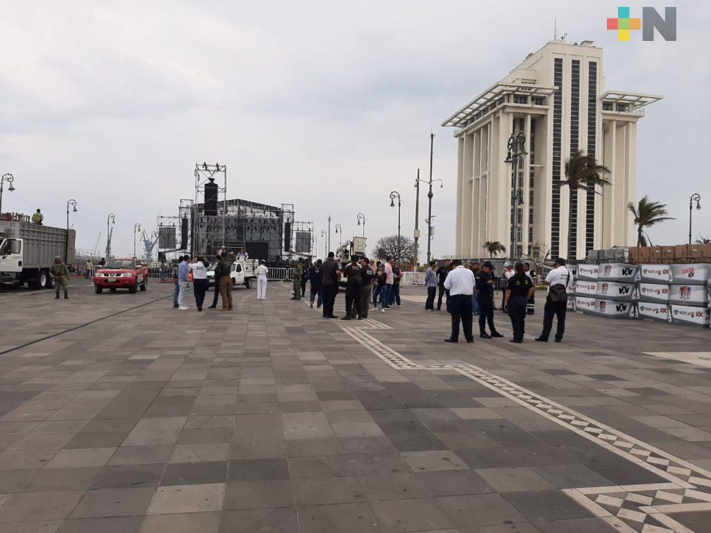 Veracruz, Ver.- Autoridades de los tres niveles de Gobierno realizaron un recorrido de supervisión por la zona de la macroplaza del malecón de Veracruz, que esta noche será la sede de la tradicional «Quema del Mal Humor».