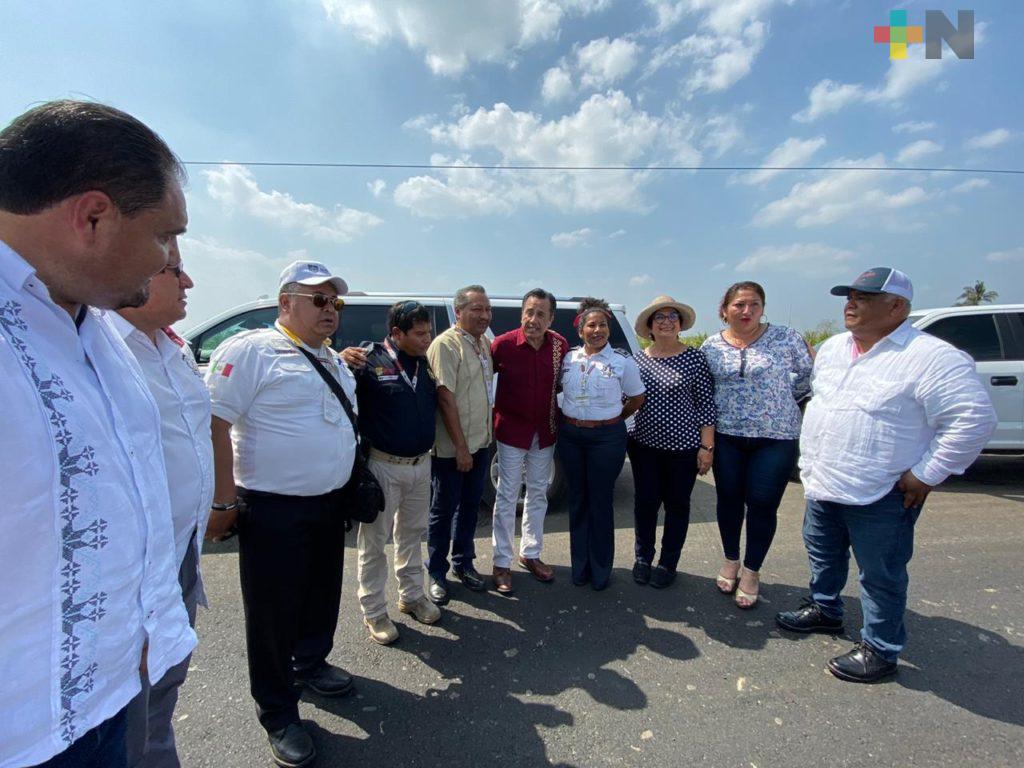 Cosamaloapan, Ver.- Bajo el sol cuenqueño y acompañado por el secretario de Gobierno, Eric Cisneros Burgos, el gobernador Cuitláhuac García Jiménez supervisó el tramo del asfaltado en la carretera Acula – Ixmatlahuacan, en la Cuenca del Papaloapan, que se construye con recursos estatales.