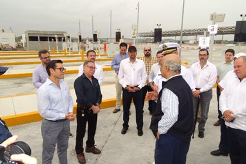 Junto con el Director General de la Administración Portuaria Integral de Veracruz, Miguel Ángel Yáñez Monroy y el presidente de la Confederación Nacional de Agentes Aduanales, entre otros invitados, Ahued Bardahuil, realizó hoy un recorrido de supervisión de avance de los trabajos.