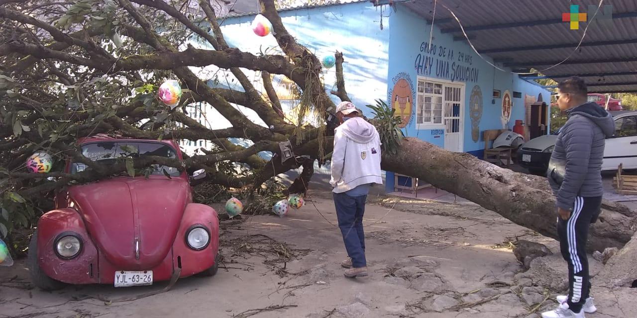 Mientras que en la región de Zongolica, además de la caída de árboles se reportan varias casas destechadas.
