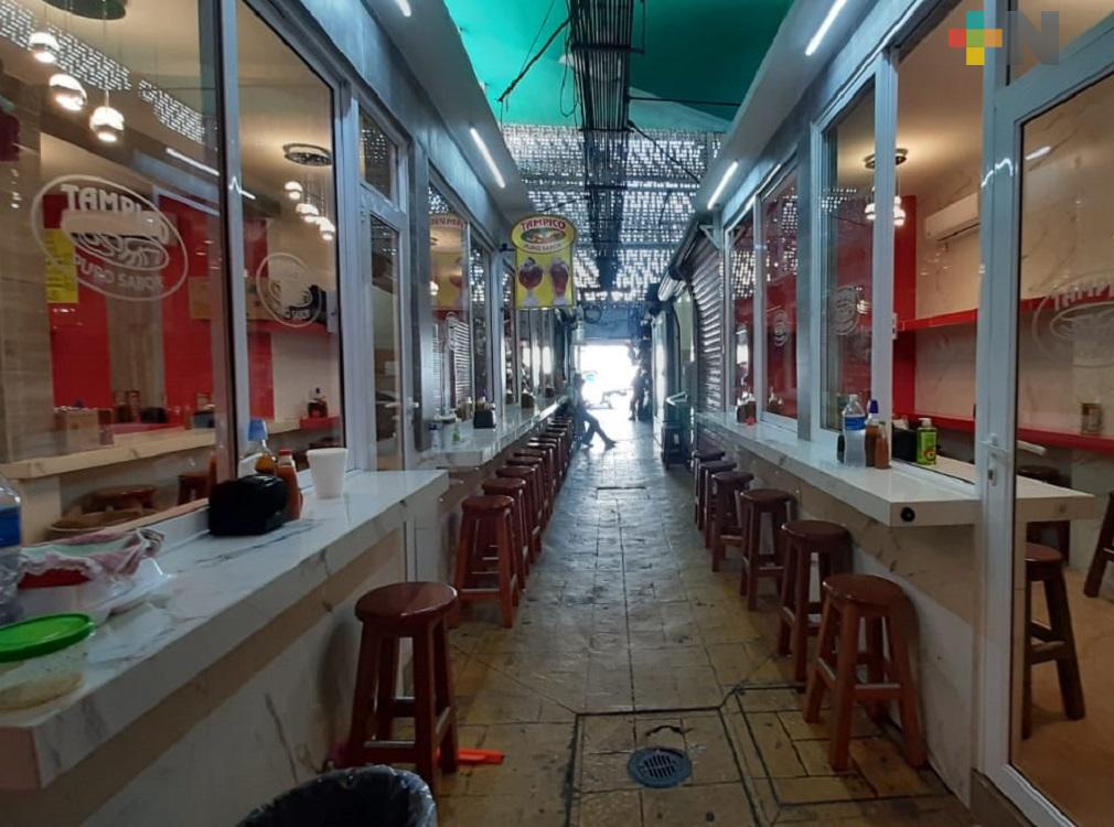 El sector de restaurantes de este mercado, es el más golpeado, para no reducir la plantilla laboral, ante la falta de comensales, les han disminuido el sueldo hasta en un 70 por ciento.