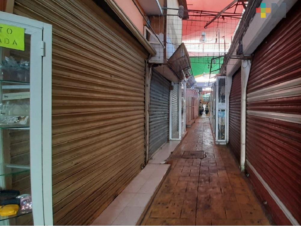 Veracruz, Ver.- Pese a la contingencia por el virus del Covid 19, el Mercado Hidalgo de la ciudad de Veracruz labora con el 30 por ciento de sus locales abiertos, la mayoría reforzando medidas de higiene.