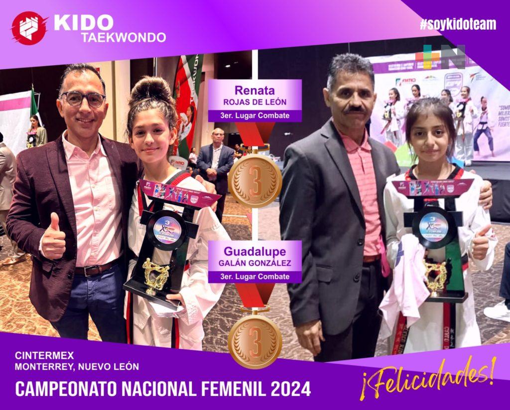 En días pasados dentro del Campeonato Nacional celebrado en Monterrey, Nuevo León; las taekwondoinas Ranata Rojas de León y Yaretzi Guadalupe Galán González ganaron preseas de bronce para la organización KIDO Taekwondo.