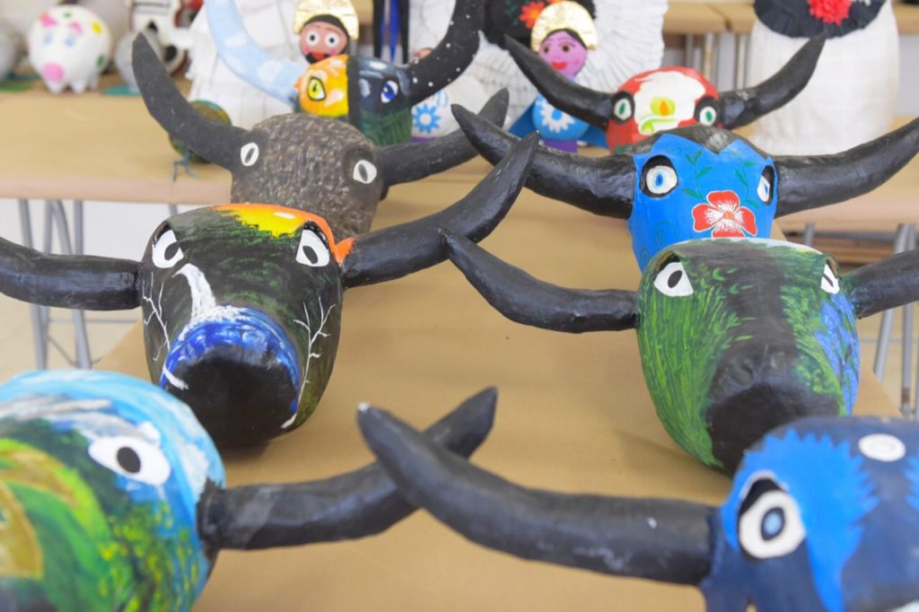 Jeanet García Sánchez, especialista en cartonería y papel maché, detalla que en su asignatura se aprenden técnicas de manejo de alambrado, elaboración de engrudo y el reciclaje de materiales para elaborar máscaras tradicionales, figuras decorativas como alcancías o Catrinas, e incluso piñatas.