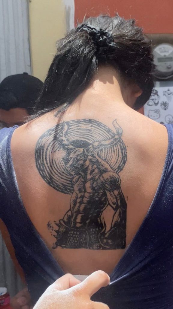 “Esta técnica de grabado y aplicado como gráfica corporal abre el espacio comunitario. El hecho de que el arte se comparta de esta manera en el espacio público desde la cooperación voluntaria, se vuelve como un acto político” señala Sinaí Santiago, estudiante de Psicología.