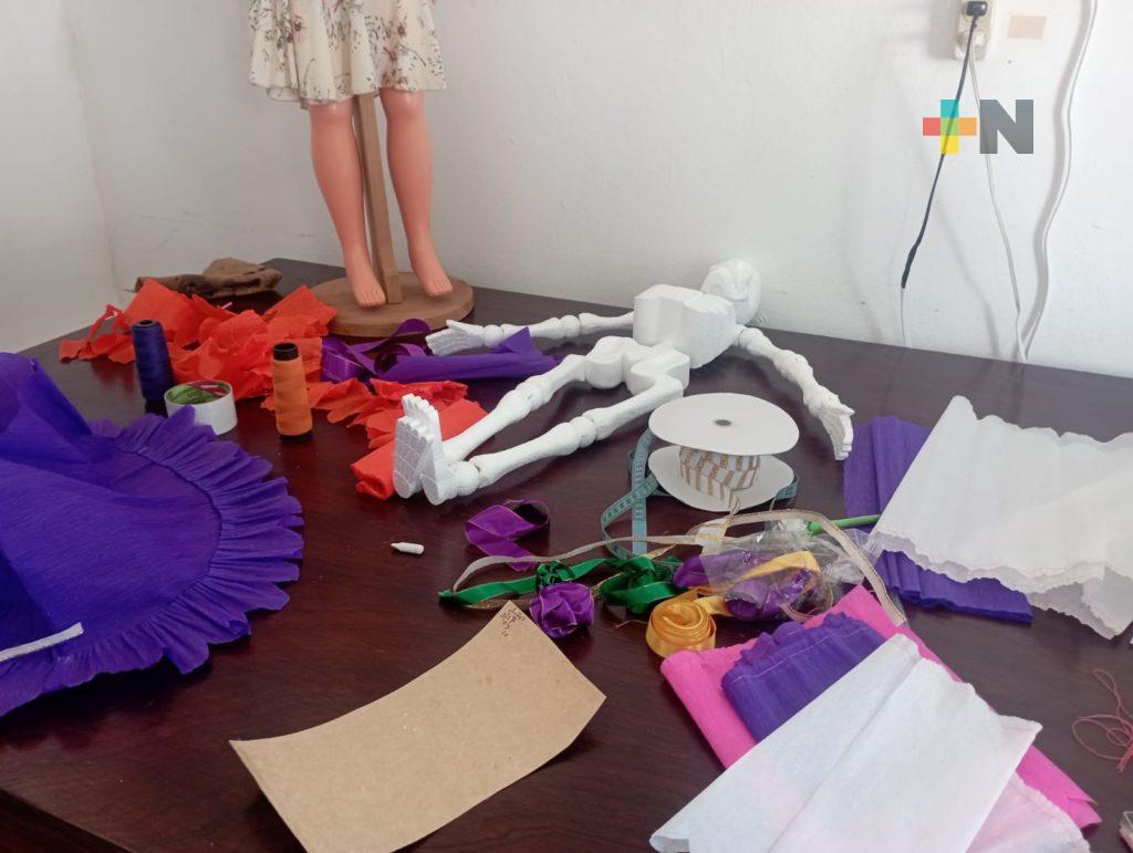 Coatzacoalcos, Ver.- Diseñadas en su gran mayoría con materiales reciclados, alumnas de los diversos talles del Sistema del Desarrollo Integral para las Familias de Coatzacoalcos (DIF), elaboraron diversas catrinas que serán exhibidas en el parque Miguel Hidalgo el próximo sábado cuatro de noviembre.