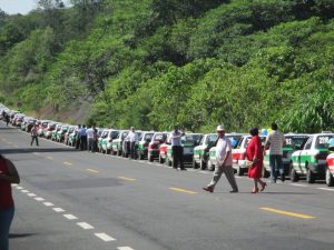 Coatepec, Ver.- Para reiterar que su disposición de respetar la Ley, los reglamentos a los que están sujetos, taxistas de más de setenta municipios, adheridos al Sindicato de Operadores, Propietarios y Anexos del Estado de Veracruz (Sopaver) realizaron una movilización del libramiento de Coatepec a la congregación de Tuzamapan, donde tuvieron una celebración religiosa y posteriormente un encuentro familiar.