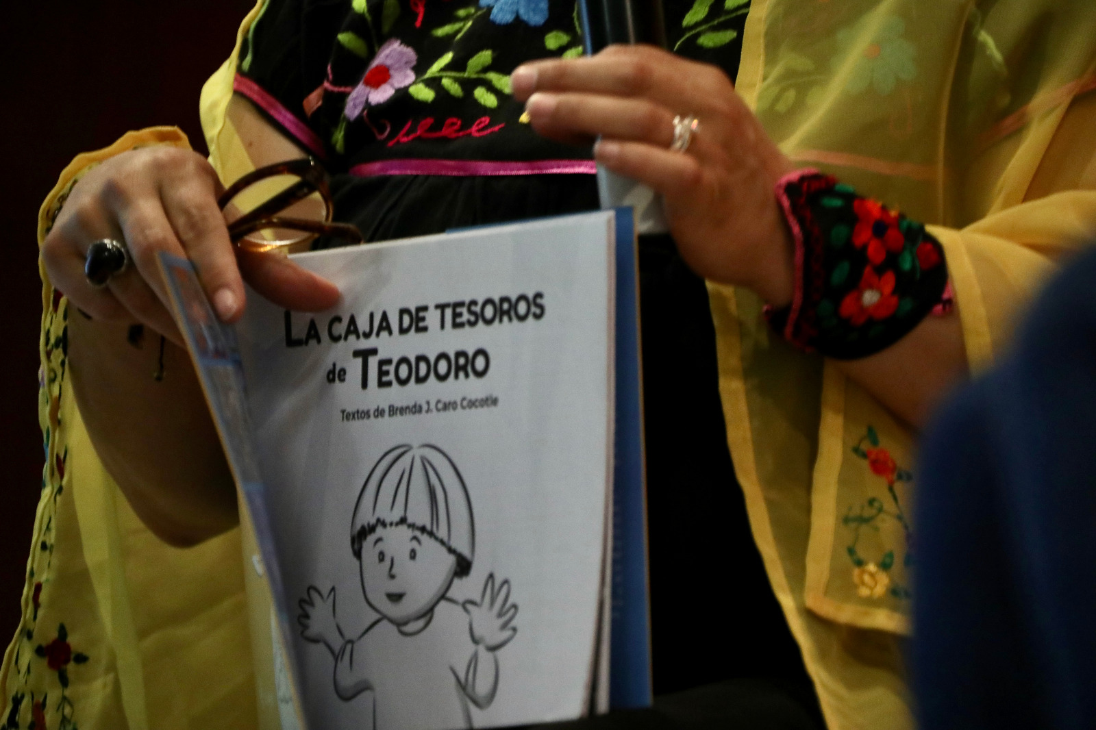 “Publicamos este libro con ilustraciones para que pinten, jueguen y reconozcan personajes, porque lo que hizo el maestro fue rescatar las tradiciones totonacas en un trazo preciso y una paleta de vibrantes colores; es un ejercicio que nos acerca a lo espiritual e intelectual”, destacó la directora general del organismo, Silvia Alejandre Prado.