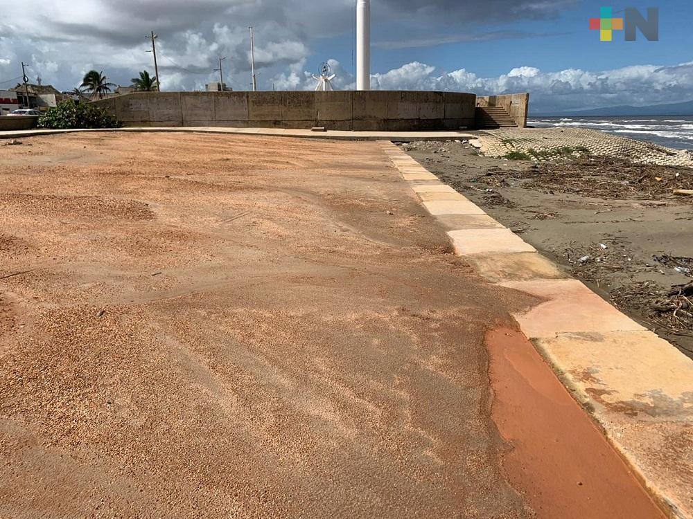 Terrazas instaladas en malecón de Coatzacoalcos, sí contuvieron arena y palotada