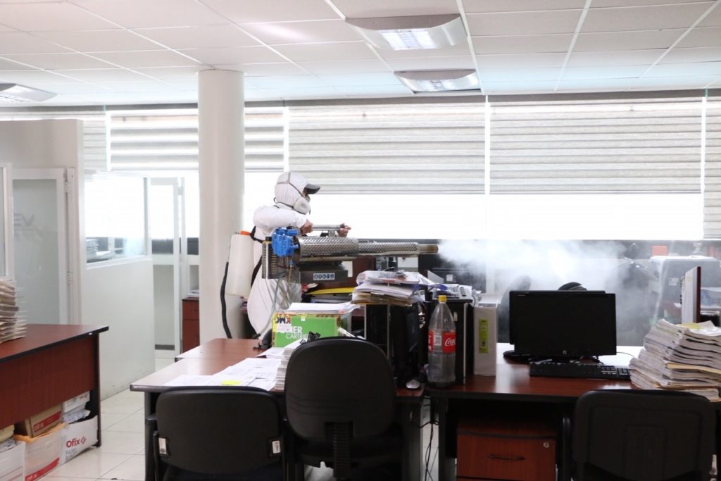 Especialistas aplicaron desinfectante germicida líquido de última generación, para eliminar la suciedad y potenciales contaminantes, disminuir la transmisión de enfermedades, erradicar virus, bacterias y esporas.