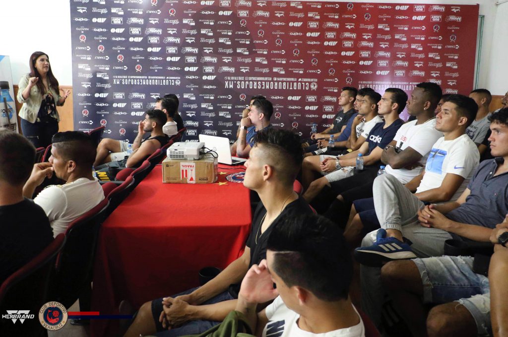 Boca del Río, Ver.- Al finalizar la práctica, equipo y cuerpo técnico del Club Tiburones Rojos de Veracruz acudieron a una charla informativa por parte del Presidente de la Comisión de Árbitros del Fútbol Mexicano, Arturo Brizio.