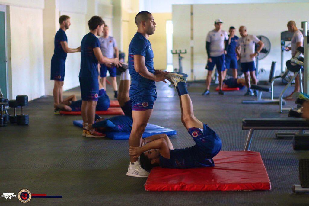 En la sesión de trabajos físicos se pudo apreciar a los argentinos Cristian Menéndez, Gaspar Íñiguez, Gabriel Peñalba y Daniel Villalva, entre otros jugadores así como el entrenador Enrique López Zarza.
