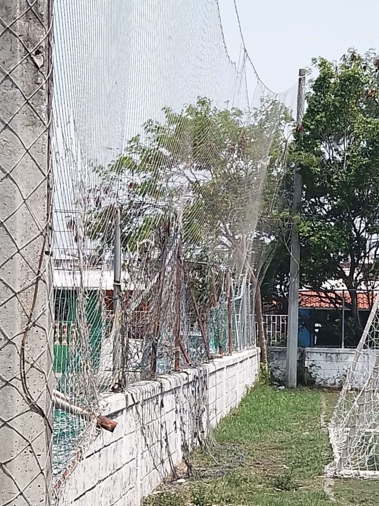 Habitantes de dicha zona habitacional en redes sociales exponen el deplorable estado de canchas, porterias y enmallado perimetral (el cual se encuentra doblado y oxidado) que pone en riesgo la integridad física de los niños, jóvenes y adultos que diariamente hacen uso de dicho espacio deportivo.