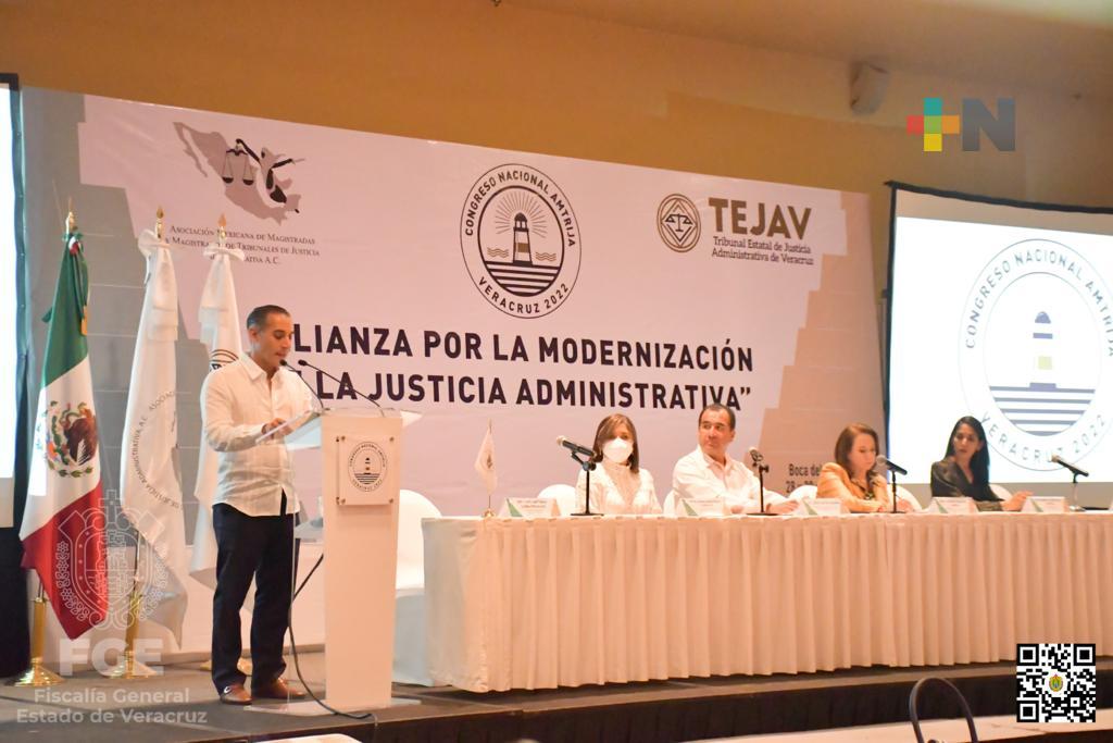 Veracruz, Ver.- En Boca del Río, la titular de la Fiscalía General del Estado (FGE), Verónica Hernández Giadáns, asistió como invitada especial, a la ceremonia de clausura del Congreso Nacional “Alianza por la Modernización de la Justicia Administrativa”, en el que Magistradas y Magistrados de los Tribunales de Justicia Administrativa del país, llevaron a cabo un intercambio académico y jurisdiccional, que contó para esta sesión final del curso, con la presencia de la Ministra de la Suprema Corte de Justicia de la Nación, Yasmín Esquivel Mossa, a quien le entregaron un reconocimiento.