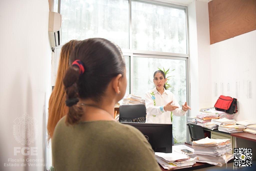 Coatzacoalcos, Ver.- La Fiscal General del Estado, Verónica Hernández Giadáns, realizó una visita de supervisión en las instalaciones de la Fiscalía Especializada en Investigación de Delitos de Violencia contra la Familia, Mujeres, Niñas y Niños y de Trata de Personas en esta ciudad, en la que aprovechó para dialogar con ciudadanas y ciudadanos que se encontraban realizando trámites en esta instancia.