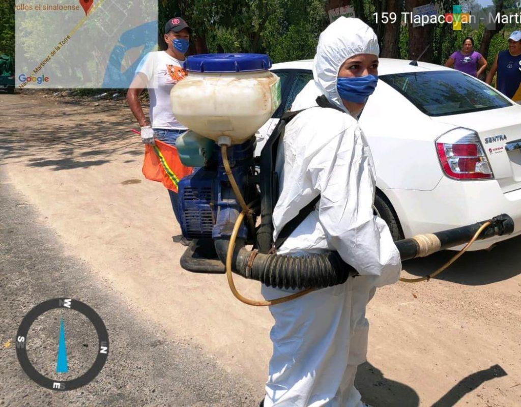 Tlapacoyan, Ver.- La sanitización de espacios públicos como los son mercados, tianguis y vialidades del municipio son parte de las estrategias que han puesto en marcha las autoridades municipales de Tlapacoyan.