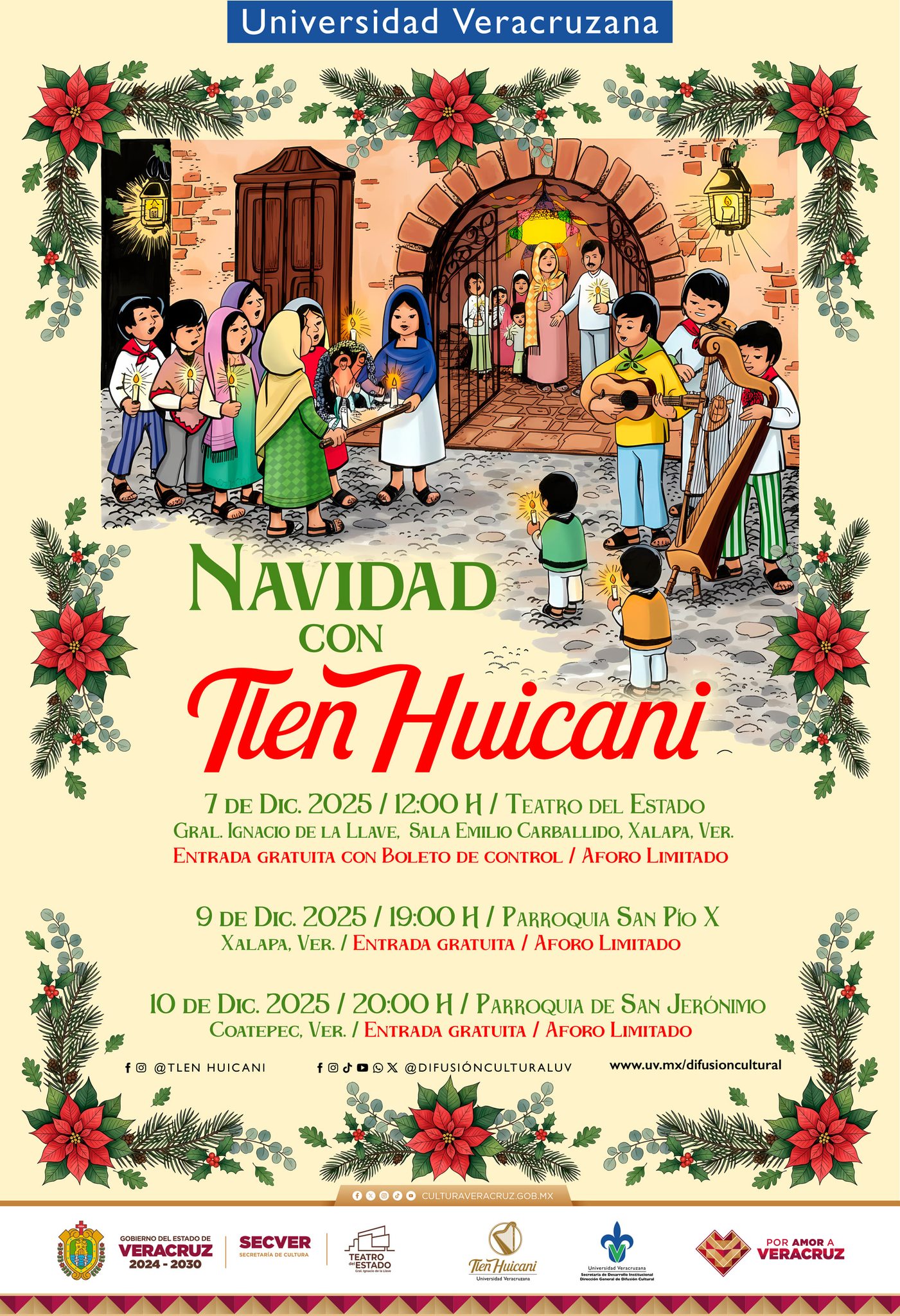 Xalapa, Ver.- Xalapa y Coatepec son los escenarios en donde tradicionalmente el grupo Tlen Huicani ofrece conciertos gratuitos por la temporada navideña.