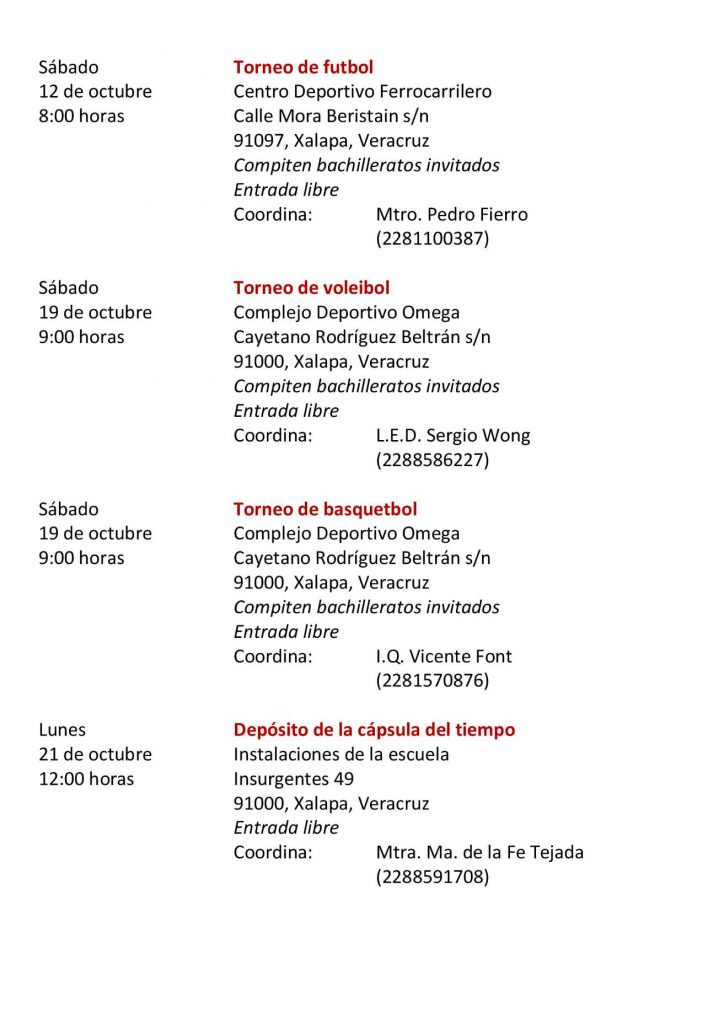 Xalapa, Ver.- Todo listo para que del 12 al 28 de octubre, el Colegio de Bachilleres matutino “Ricardo Flores Magón” celebre su 50 aniversario.