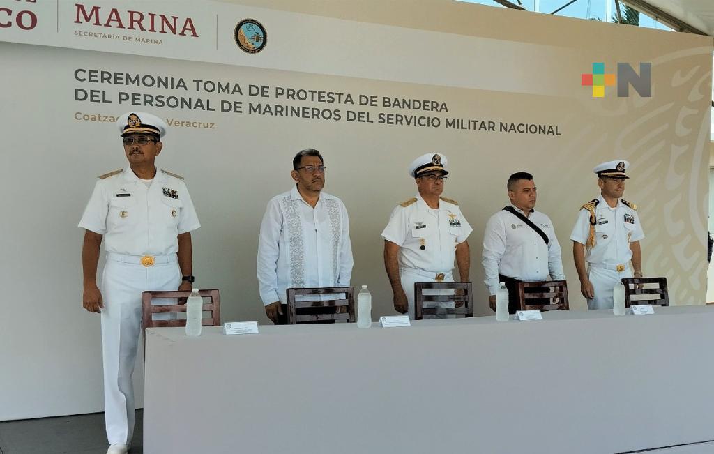 Coatzacoalcos, Ver.- Este viernes, se realizó la ceremonia de toma de protesta de bandera de los conscriptos del Servicio Militar Nacional clase 2004 que estarán bajo la instrucción del personal de la Secretaría de Marina.