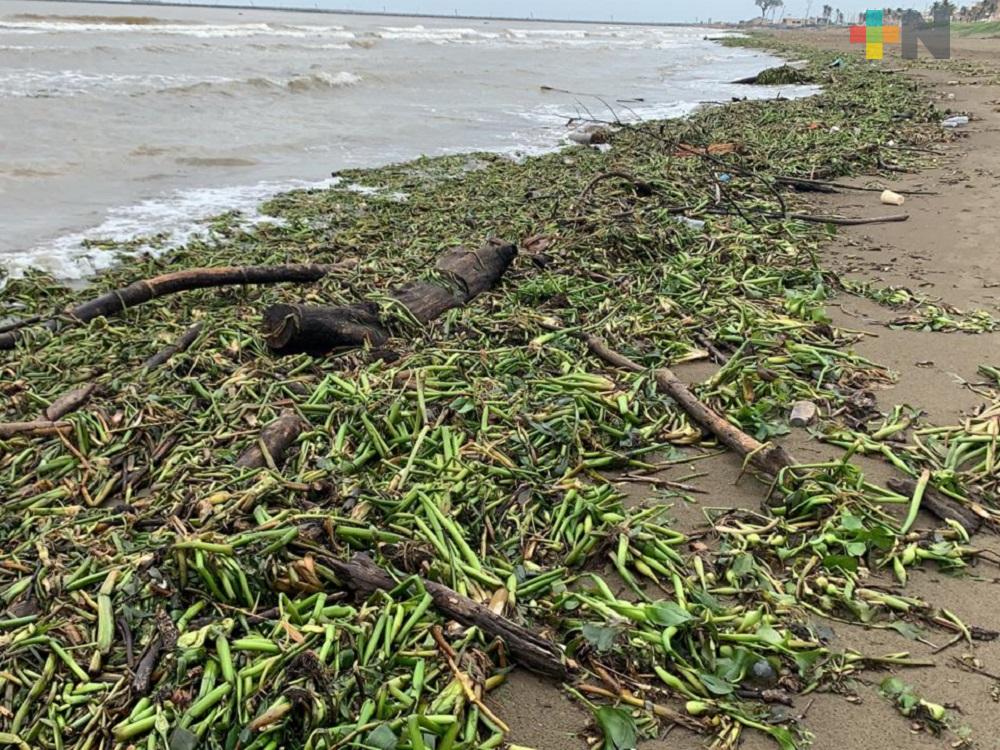 Toneladas de pantano, palotada y residuos plásticos llegan a playas de Coatzacoalcos