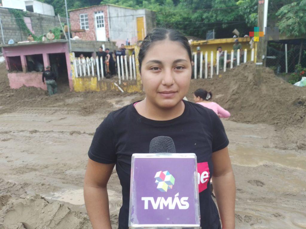 Milie Rojas, quien vivía con su familia en una de las cuatro viviendas en donde la tierra entró, confirmó que perdió todas sus pertenencias, solo pudo llevarse ropa.
