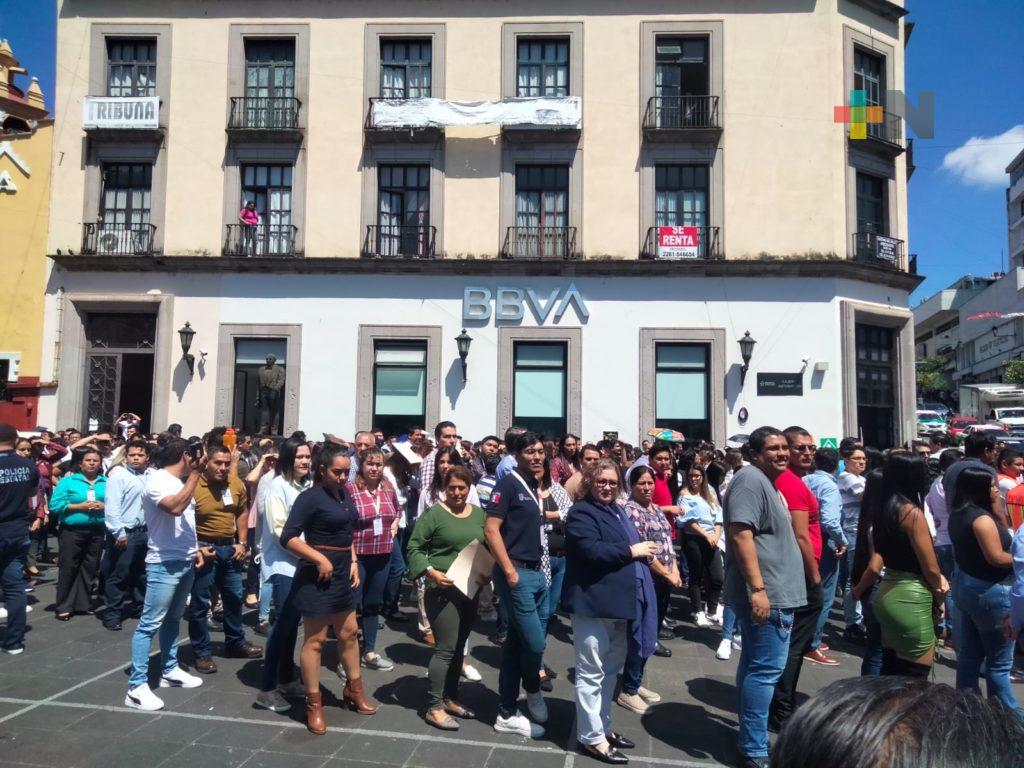 Trabajadores estatales participan en simulacro de sismo en Xalapa