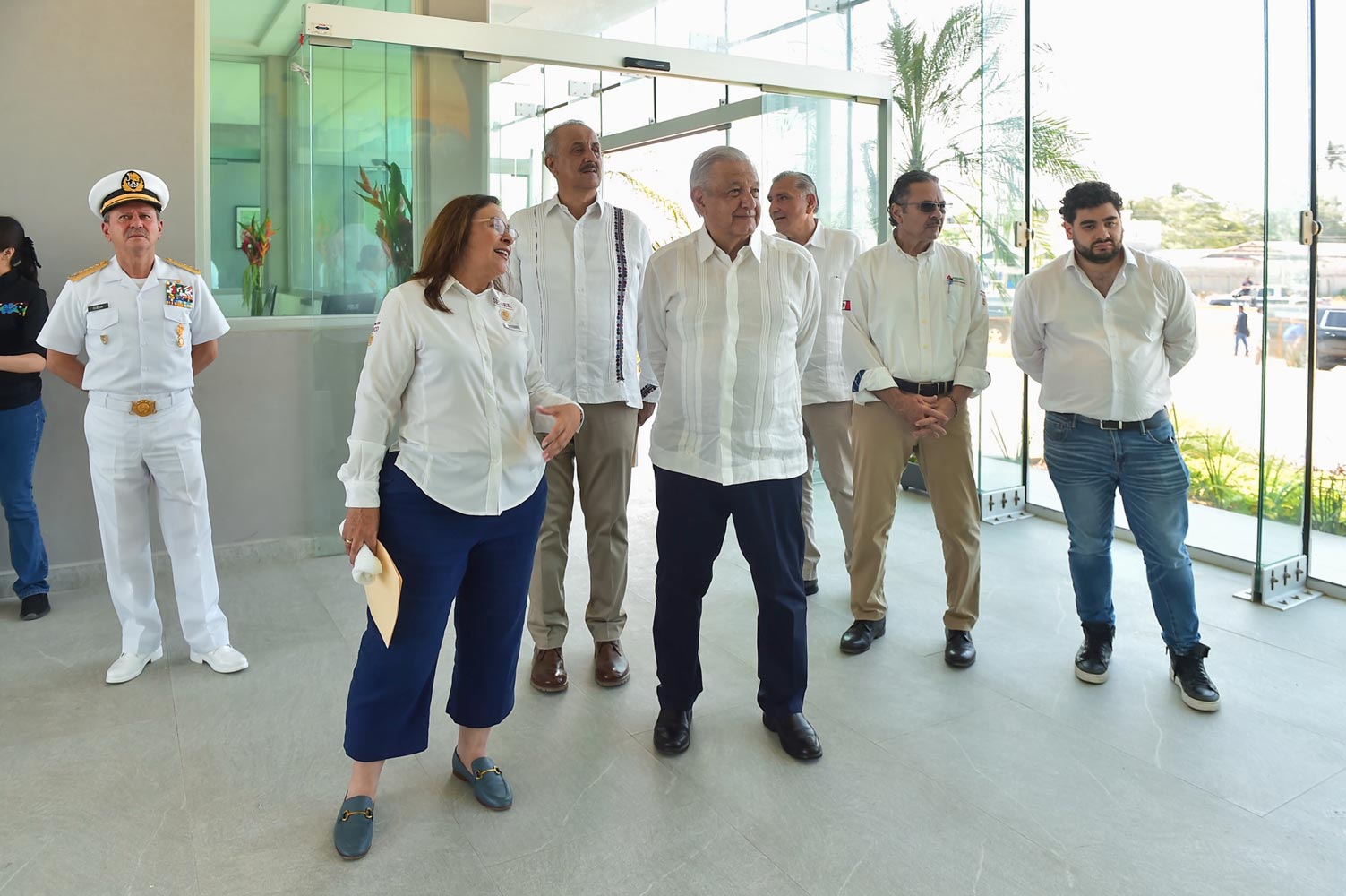En el evento estuvo acompañado por el gobernador interino de Tabasco, Carlos Manuel Merino Campos; las secretarias de Energía, Rocío Nahle García; de Seguridad y Protección Ciudadana, Rosa Icela Rodríguez Velázquez y del Trabajo y Previsión Social, Luisa María Alcalde Luján; los secretarios de Gobernación, Adán Augusto López Hernández y de Marina, José Rafael Ojeda Durán; el directo general de Pemex, Octavio Romero Oropeza y el subsecretario de Egresos de la Secretaría de Hacienda y Crédito Público, Juan Pablo De Botton Falcón.