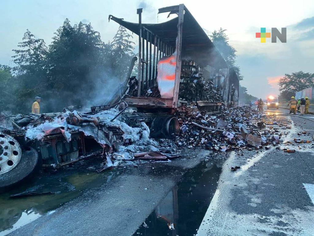 Tractocamión se incendia en autopista La Tinaja – Cosoleacaque, sin reporte de víctimas mortales