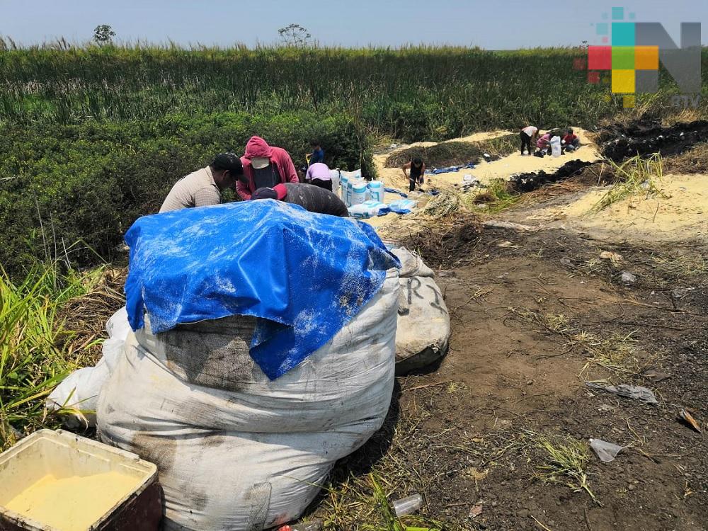 Tal situación fue aprovechada por pobladores cercanos a esta vía, que llevan más de dos horas en labores para llevarse en costales, cubetas y garrafones el azúcar.