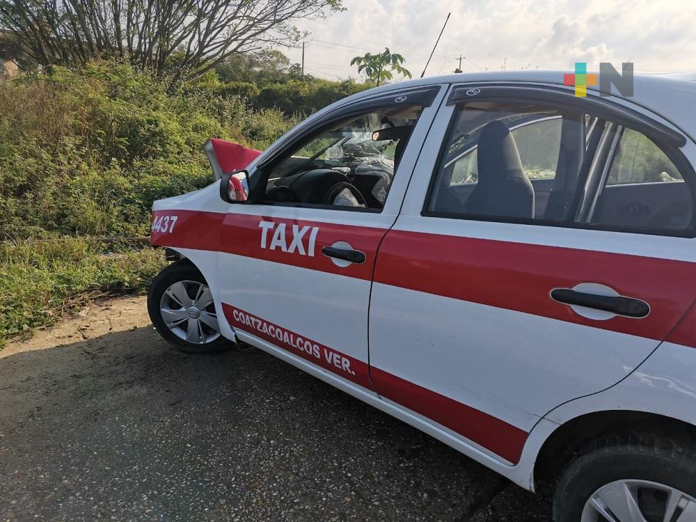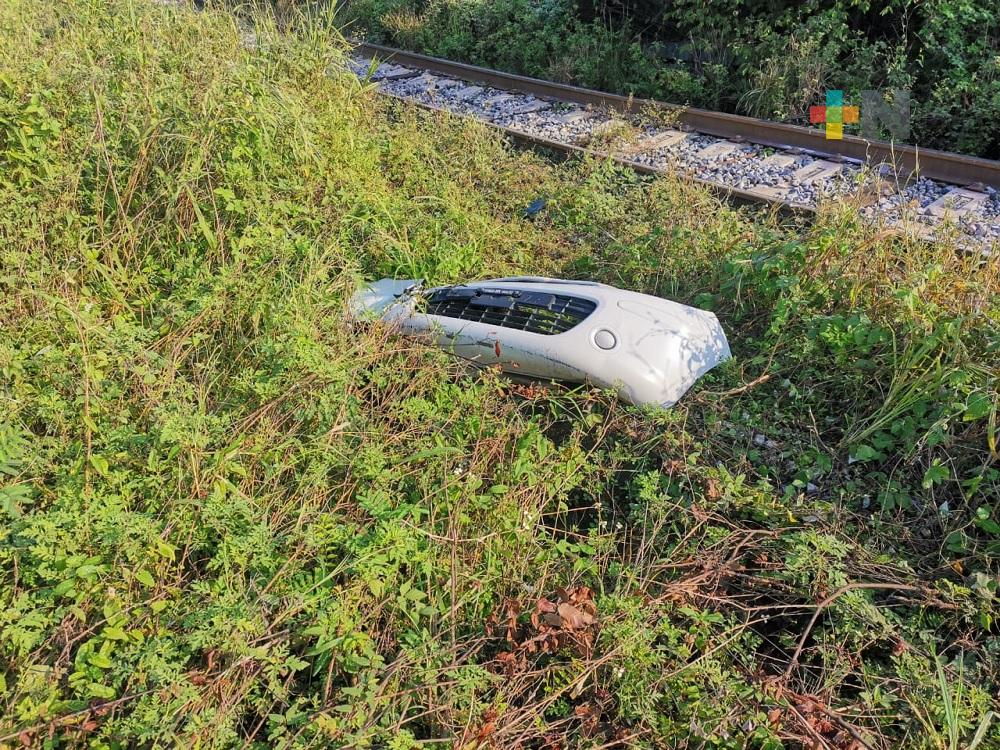Tren destroza parte frontal de taxi en Coatzacoalcos