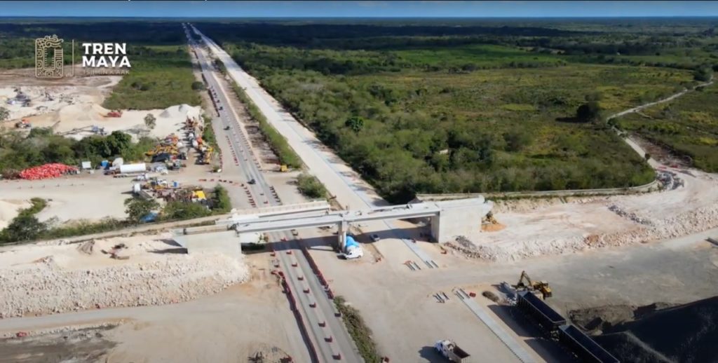 Ciudad de México.- En el Tren Maya entró en operación un paso peatonal y vehicular en Villa El Triunfo, mientras avanza la cimentación de las estaciones Palenque y Edzná; la construcción de la Base de Mantenimiento cerca de Teya y la soldadura de gran dimensión de la cabina y la caja del segundo vagón, en la planta de Ciudad Sahagún, Hidalgo.