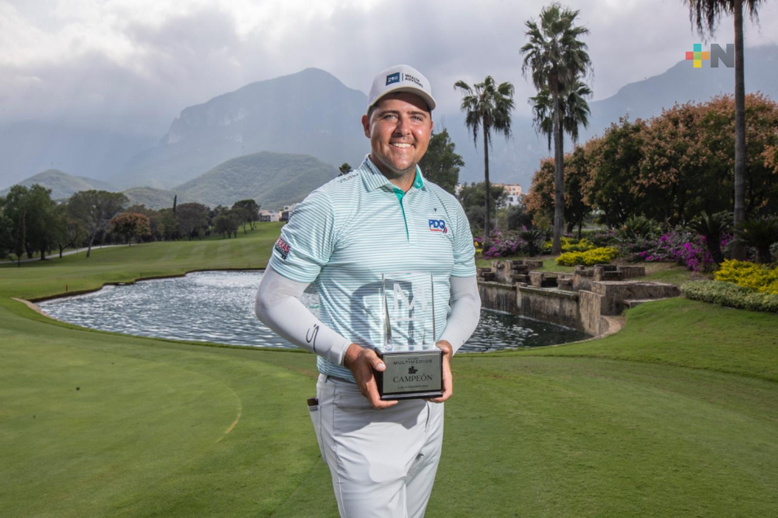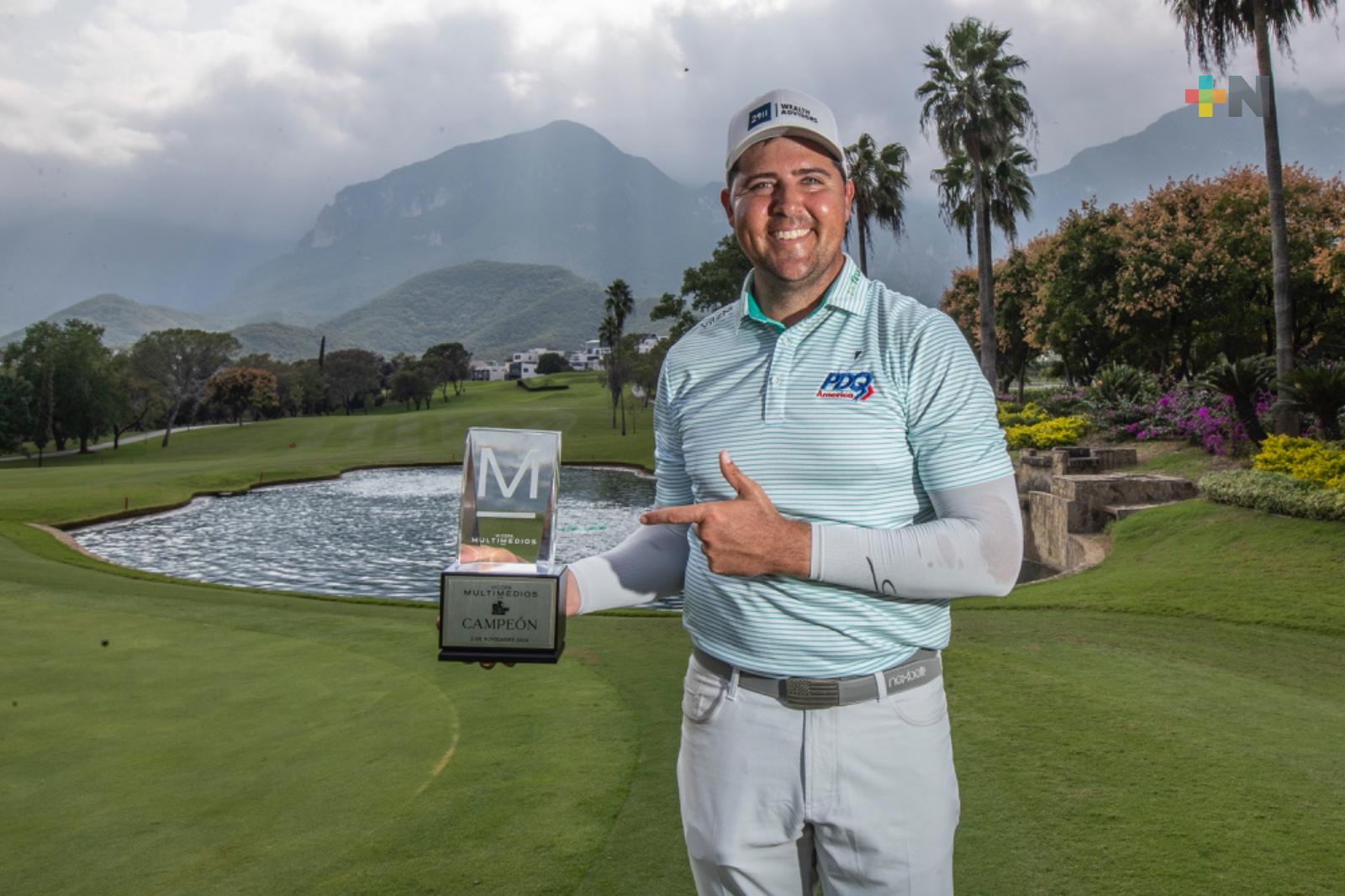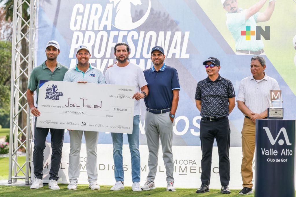 MONTERREY, NUEVO LEÓN.- ( Un título muy especial. Con un acumulado de 197 golpes, 16 bajo par, el estadounidense Joel Thelen se proclamó campeón de la VI Copa Multimedios, su segunda victoria en la Gira Profesional Mexicana (GPM) que celebró en el Club de Golf Valle Alto su cuarta etapa de la actual temporada.