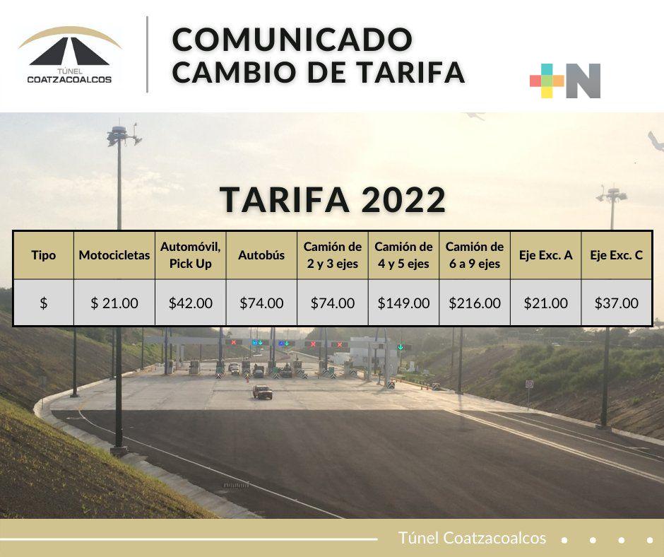 Coatzacoalcos, Ver.- El Túnel Sumergido de Coatzacoalcos registró el incremento más alto de su tarifa en los últimos años, pasó de 39 a 42 pesos a partir de este fin de semana, una diferencia de tres pesos con respecto al 2021 cuando solo aumentó un peso, esto solo para los automóviles compactos y camionetas tipo pick up.