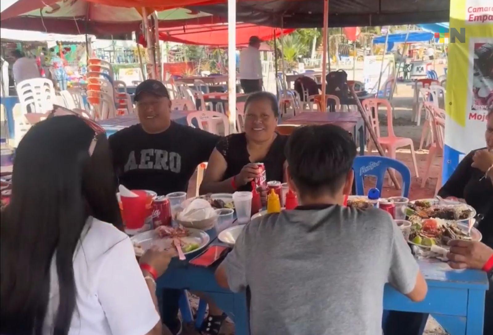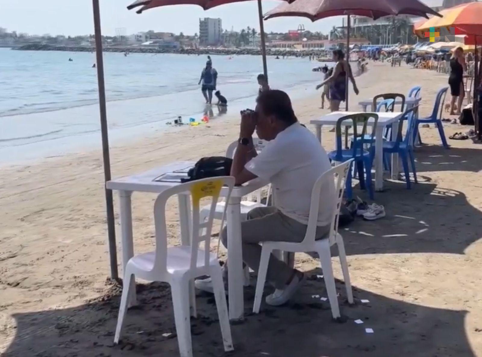 El ambiente fue completamente familiar, con niñas y niños jugando en la arena mientras adultos disfrutaban del sol y la brisa marina. Algunos visitantes decidieron refrescarse en el agua, mientras otros optaron por descansar bajo sombrillas y tomarse fotografías para recordar su estancia en la ciudad.