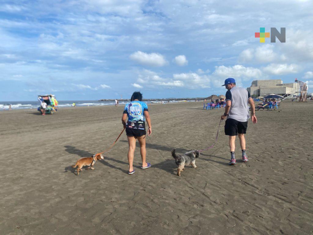 Boca del Río, Ver.- Aunque el tiempo en la zona conurbada Veracruz–Boca del Río se mantuvo más nublado de lo habitual durante el fin de semana, para algunas personas resultó perfecto para ir a la playa. Desde Toluca, Laura y Didier hicieron escala en Veracruz antes de regresar a San Cristóbal de las Casas, su tierra natal, y decidieron disfrutar del mar junto a sus perros Denver y Crixus, de 16 y 14 años, quienes conocieron por primera vez la arena y las olas.