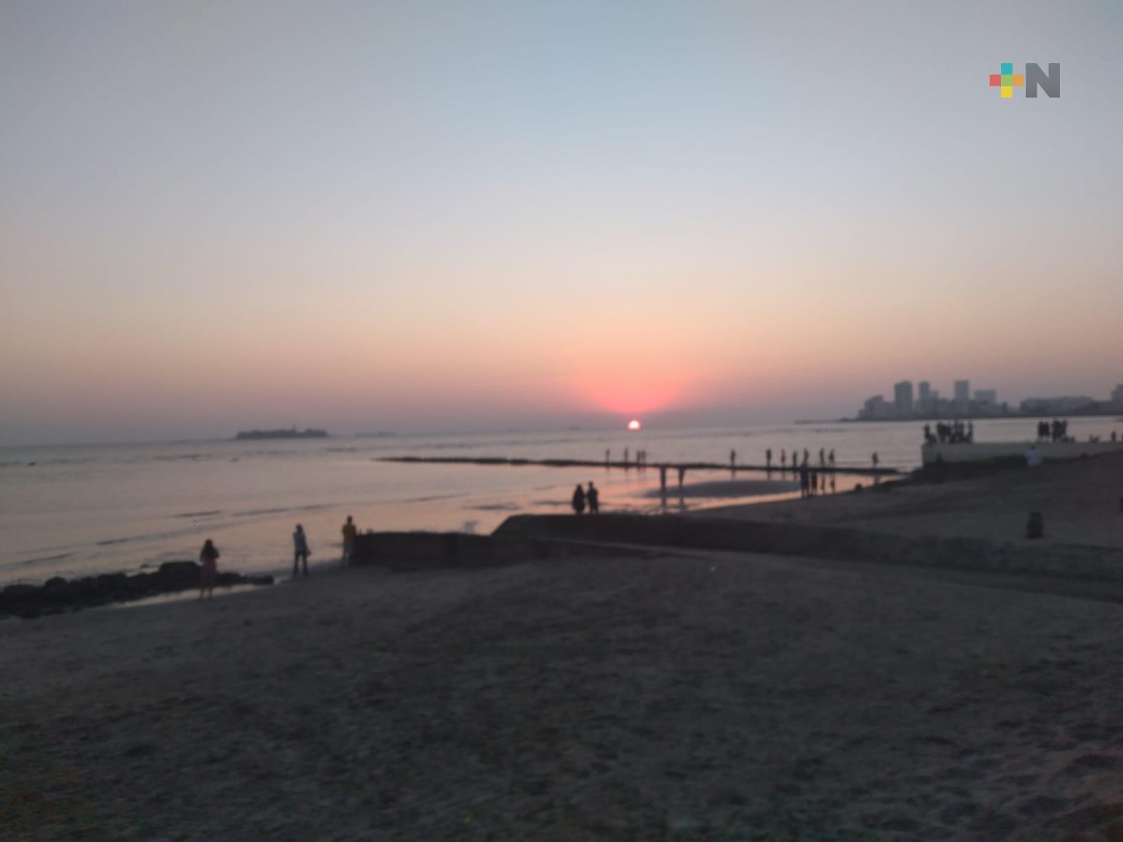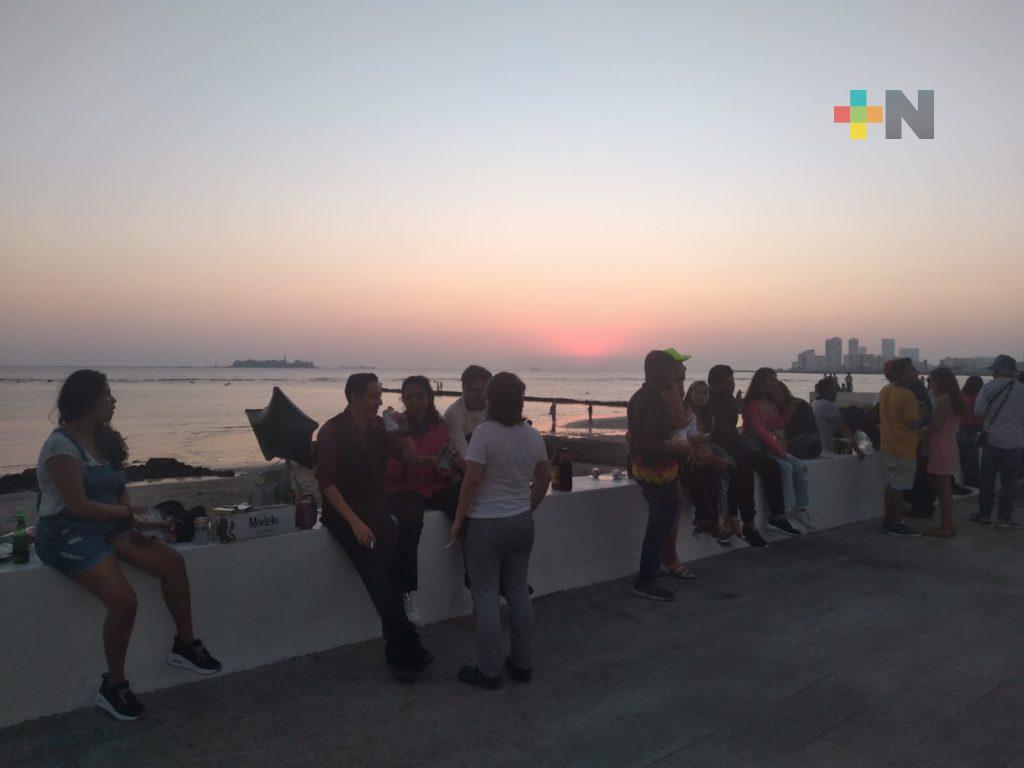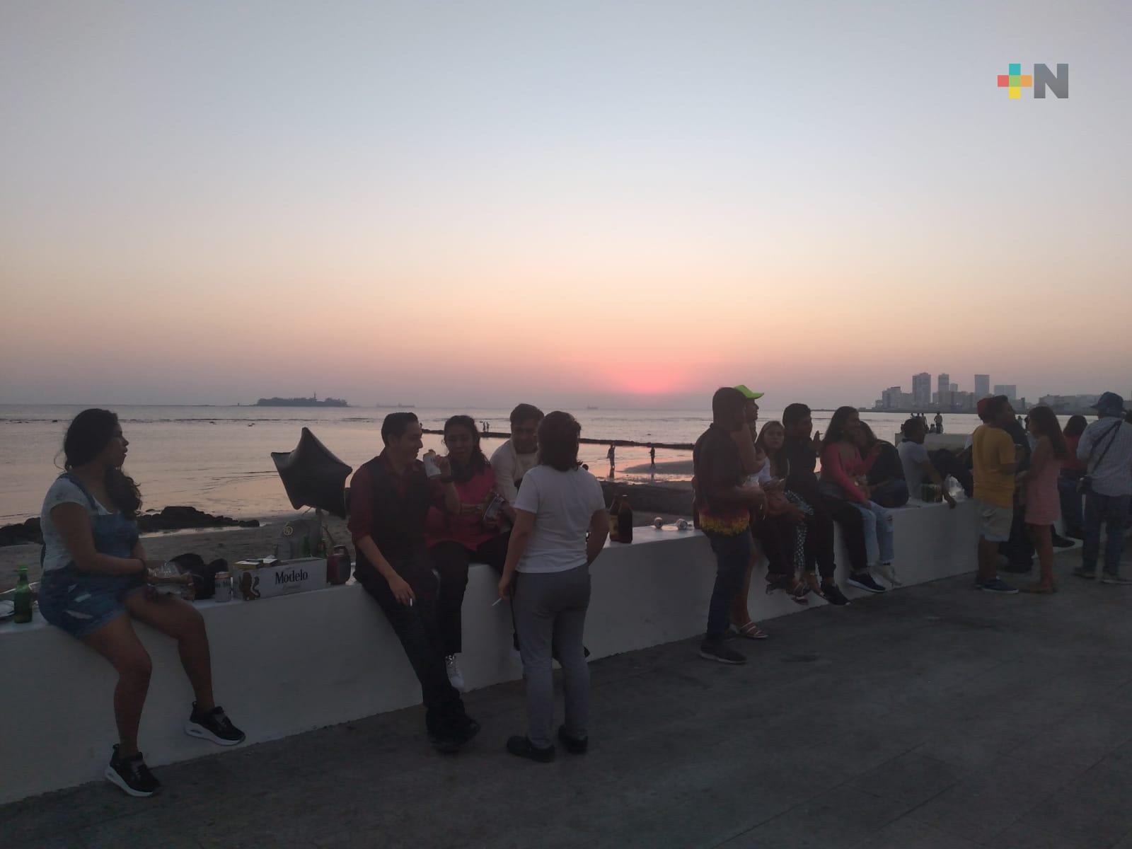 Turistas y locales acuden a recibir primer amanecer del 2022 al bulevar de Veracruz