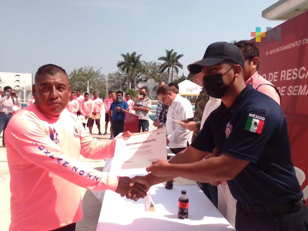 Tuxpan, Ver.- Elementos de Protección Civil, Bomberos y Seguridad Publica Municipal concluyeron su curso de capacitación como rescatistas, quienes recibieron sus reconocimientos que los acredita como aptos para realizar salvamentos seguros y oportunos de personas de cualquier edad sin importar las circunstancias de riesgo.