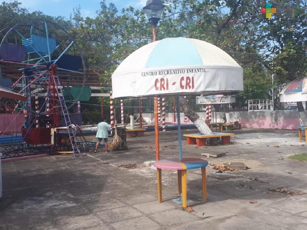 Veracruz, Ver.- Los trabajos de rehabilitación del parque recreativo Cri- Cri que iniciaron en el mes de octubre llevan un avance del 50 por ciento.