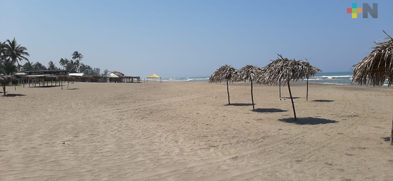 Tecolutla, Ver.- Sin turistas y totalmente limpias se observaron las playas de la franja turística Costa Esmeralda del municipio de Tecolutla, en donde debido a la emergencia de salud que se vive por el Coronavirus, las playas están cerradas al público.