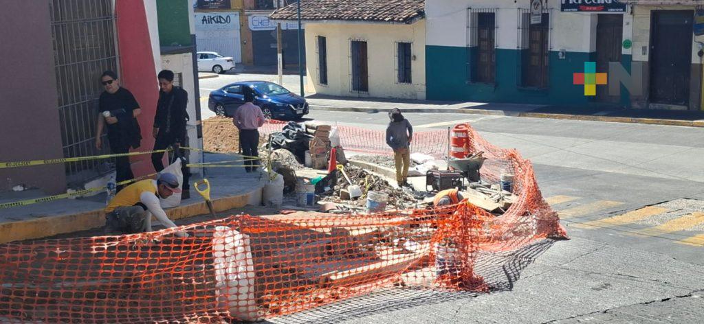 Xalapa, Ver.- Tras el resultado de la intervención de urbanismo táctico que realizaron estudiantes de Arquitectura en la esquina de las calles Arteaga y Xalapeños Ilustres, en el centro de Xalapa, las autoridades municipales ya realizan una obra para ampliar las banquetas en favor de los peatones y adecuan rampas para personas con discapacidad, además de jardineras.