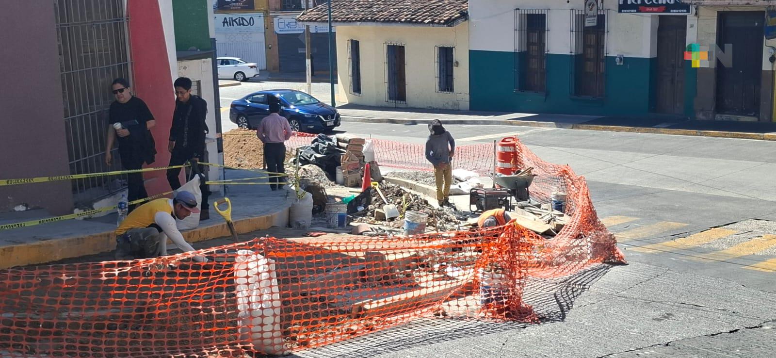 Xalapa, Ver.- Tras el resultado de la intervención de urbanismo táctico que realizaron estudiantes de Arquitectura en la esquina de las calles Arteaga y Xalapeños Ilustres, en el centro de Xalapa, las autoridades municipales ya realizan una obra para ampliar las banquetas en favor de los peatones y adecuan rampas para personas con discapacidad, además de jardineras.