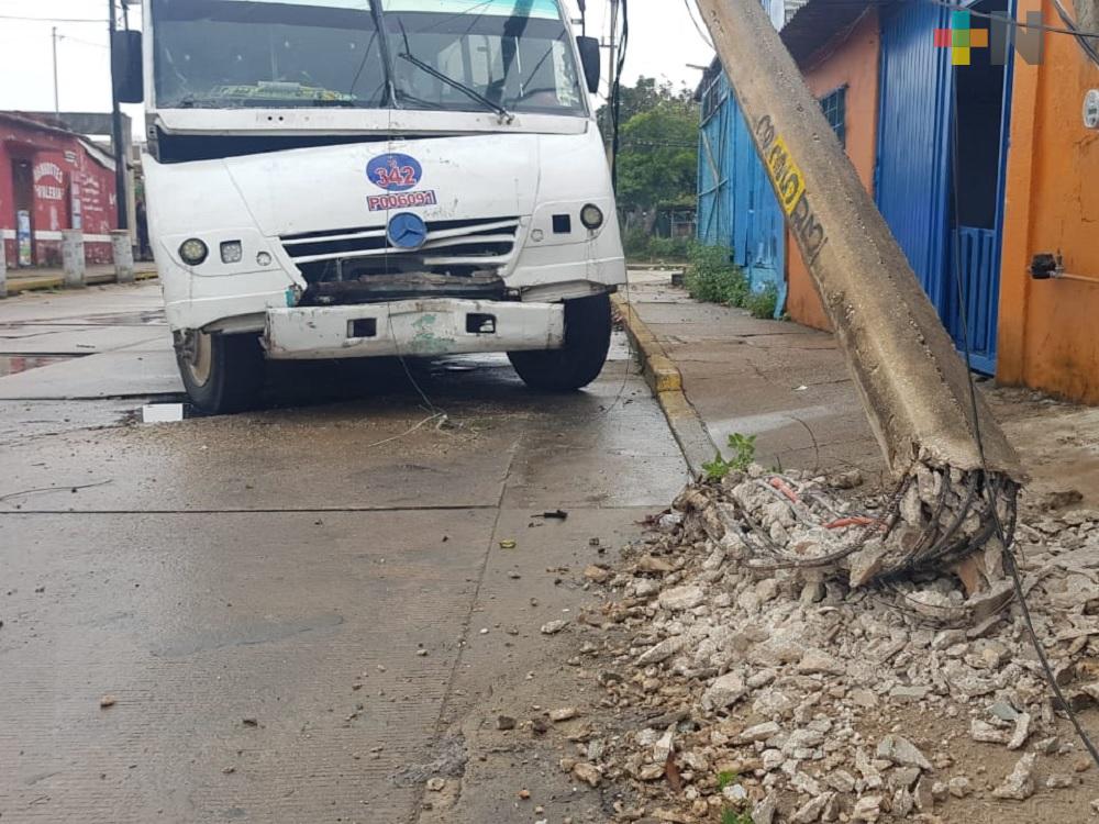 Coatzacoalcos, Ver.- Un camión de transporte público derribó un poste de concreto en la colonia Rafael Hernández Ochoa de Coatzacoalcos.