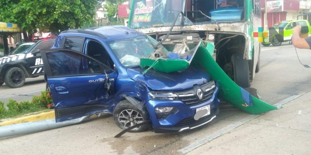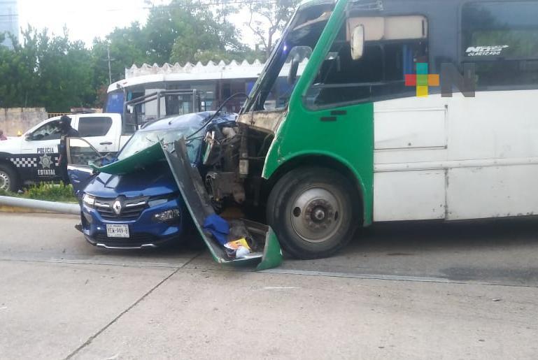 Urbano impacta auto compacto en Coatzacoalcos, saldo una mujer lesionada
