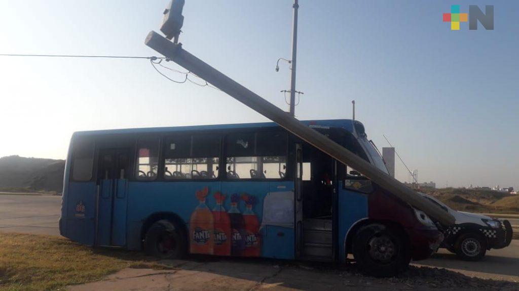 El hecho se registró aproximadamente a la 8:00 horas, cuando automovilistas dieron conocimiento a las autoridades sobre la unidad 86 de transporte público que había derribado un poste a la altura de la colonia Puerto Esmeralda.