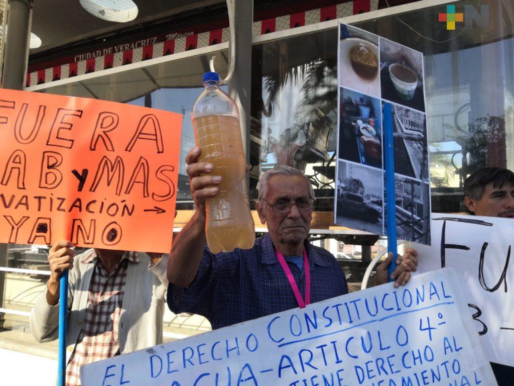 Veracruz, Ver.- Ciudadanos organizados encabezaron una manifestación en contra del Grupo Metropolitano de Agua y Saneamiento (Grupo MAS) y la Compañía de Agua de Boca del Río (CAB).